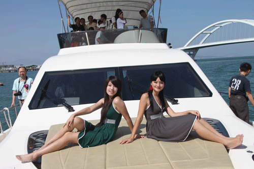 2009年10月31日上午,2009中国(厦门)国际游艇帆船展览会在厦门市五缘湾帆船港开幕,近百个海内外品牌在五缘湾帆船港共超过3万平方米的展区内亮相,展会延续了水陆联动的特色,将持续至11月3日。 境外展商中,法国、新加坡和台湾的展商将携手亮相。除了意大利品牌阿兹姆将携带4款最新产品参展外,中国国产品牌亦为展会的新军。湖南太阳鸟携68尺豪华游艇,毅宏游艇也隆重推出63尺的新品。 据了解,本届展会船艇类展商占47%,船用设备、部件、配件展商占26%,规划咨询、船艇设计、码头和俱乐部等服务类展商占27%。 本届游艇展会配套活动内容更加丰富,包括船艇水上表演、试乘体验、游艇新品发布、船艇表演促销、帆船航模表演、休闲海钓活动、游艇与城市发展论坛、游艇宝贝大赛、特价船艇推介拍卖会等等,更加吸引市民的眼球。