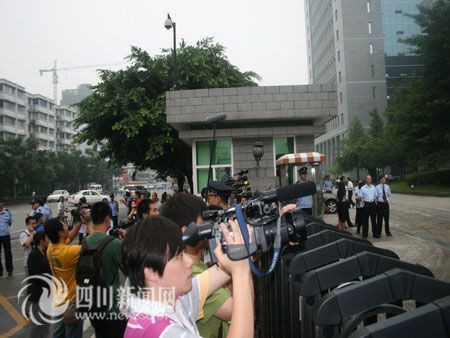 ![]() 媒体在省高院门口采访受害者家属