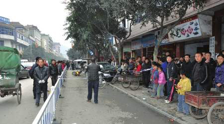 在工商银行路口附近擦皮鞋的兰桂英(化名)说,事发当时,她正坐在板凳上埋头给客人擦鞋,突然听到汽车轮胎剧烈摩擦地面发出的尖啸声,“我连忙抬头一看,一辆黑色轿车冲上了人行道,"噼里啪啦"几声响后,行人、摩托车、自行车像波浪般"哗"地被冲到两边,随后一阵惨叫声、哭喊声……”兰桂英说,她当时吓得一下站起身来,正擦鞋的客人也看得目瞪口呆。随即,兰桂英等人从恍如噩梦般的事实面前清醒过来,人群像炸了锅似的,纷纷朝事发现场涌过去。