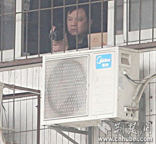 汉口一交警躲楼内拍违章 自己车停禁行车道