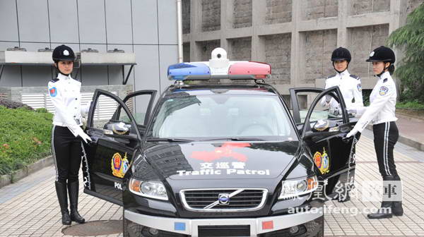 和普通交巡警区别的是,她们的坐骑由福特致胜改为沃尔沃。服装特质,上白下黑,脚穿高筒靴。女子交巡警一亮相,即受到市民关注。