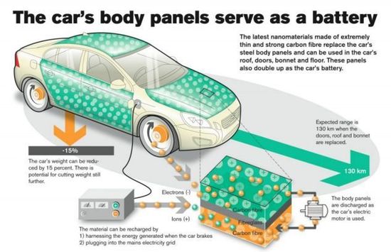 混合动力或电动汽车制造商面临的最大问题之一,就是如何不让沉重的电池增加整车设计的重量和体积。现在,沃尔沃公司正在着手解决这个难题,他们把整个车体都变成可充电的电池。这种未来汽车除了可进行夜间充电,还能将行驶途中的制动能量储存起来。 开发这款新车的三年规划在今年年初由沃尔沃公司联合伦敦帝国学院和其他七个欧洲机构共同推出。帝国学院正在研究一种碳纤维和高分子树脂的复合材料,与传统电池相比它能储存更多的能量,而且充电速度更快。除此之外,这种材料强度高而柔韧性强,也就意味着它可以被用来制造汽车车体。沃尔沃公司称,如果用该新材料替代汽车钢板车身,汽车的重量可以降低多达百分之十五。 目前科学家们正在研究如何让这种复合材料储存更多的能量,和使用何种方式进行工业化规模生产,至于电池的安装则要在万事具备的最后阶段。届时,汽车的备用轮胎槽也将开创性地被改造成复合电池的储存室。如果沃尔沃公司的这个项目获得成功,那将有可能开辟出非常广阔的应用领域。譬如,移动电话的电池可以做得如信用卡一样薄,笔记本电脑充电一次可以工作更长的时间。 |