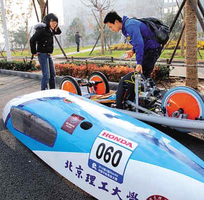 “那辆车里面没有人怎么自己动起来了?”同学们热烈地讨论着眼前非同一般的汽车表演。日前,在北京理工大学良乡校区,北京理工大学与长安汽车(微博)主办的“首届汽车文化节”成了学生们欢乐的海洋。 有一款节能汽车引起了广泛的关注,它是由机械与车辆学院汽车电子技术中心指导的大学生科技创新项目。该车采用本田公司为节能竞技大赛提供的发动机,学生在此基础上设计参赛车辆,包括发动机的节油改造、车架和车身设计、转向设计、传动设计。此节能车项目参加国内外大赛综合成绩排名领先。 在文化节上,北京理工大学副校长李和章说,长期以来,学校重视学生科技创新活动,“北京理工大学首届汽车文化节”是校园文化与汽车文化的成功融合。近年来,我校智能车竞赛屡获全国项目支持和成果,节能车多次获得国家冠军,是汽车文化在高校的传承与延续。这些活动以多视角、全方位的形式展示了汽车文化活动的风采,诠释了校园文化的丰富内涵。 |