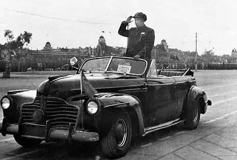 朱德乘车检阅部队 看到这里,大家应该可以明确了,1949年开国大典时朱德总司令的阅兵车不可能使用正式的军车号牌。事实上,在阅兵车左前挡风玻璃上的,是一张通行证。 什么?检阅三军的是朱德不是毛泽东?!你们不要认为记者出错了。记者很肯定地再说一遍,阅兵的是朱德不是毛泽东。从1949年开国大典始,此后的每年国庆,阅兵都会如期举行,但乘坐阅兵车检阅三军的,一直都不是毛泽东,而是三军总司令,后来固定为国防部长。 1959年,国产“红旗”检阅车首次出现在国庆庆典上。要知道,此前的10次阅兵,检阅车都非国产。比如,1949年开国大典的阅兵车是斯大林送给毛泽东的吉斯-110防弹车,车没有倒后镜,据说寓意是“社会主义不能开倒车”。 建国10周年大阅兵时,彭德怀因为庐山会议的原因在1959年9月被免去国防部长一职,1个月后,乘首辆“红旗”阅兵车检阅三军的,是新任国防部长林彪。林彪在阅兵式上宣读《中华人民共和国国防部命令》,要求全军指战员“认真学习毛泽东同志的著作”。林彪宣读命令之后,分列式开始。整个阅兵式,历时58分钟。 转年,9月,中共中央、国务院决定,将中国成立后每年国庆大庆、阅兵改为“五年一小庆,十年一大庆,逢大庆举行阅兵”。 再次阅兵是24年后。