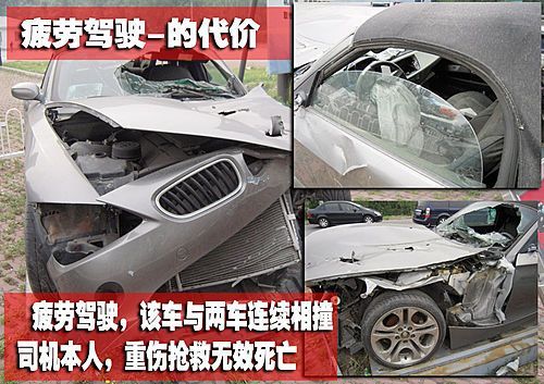 ![]() 酒后驾车的危害已经无需再多说了,但是每天又有多少驾驶员忘记了家人、朋友的提醒呢?04年7月28日,这台尼桑蓝鸟的驾驶员在酒后驾驶车辆,在刚刚行至出京方向31公里处就与前方大货车发生刮蹭,进而车辆失控翻滚,造成驾驶员重伤抢救无效死亡。 隐患5:疲劳驾驶