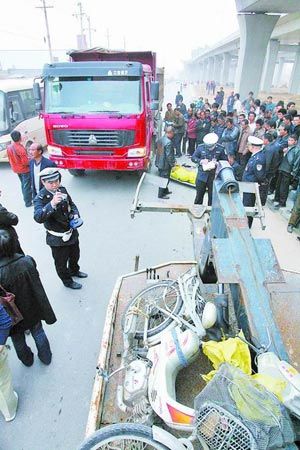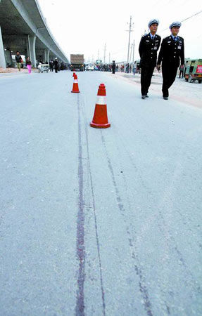 ![]() ![]() 警察现场调查 ![]() 被撞者的血迹绵延200米长 大河报11月6日报道 昨日,大学路与南三环交叉口附近发生一幕惨剧:一辆无牌大货车撞上一名骑车男子后,将其拖行200米,男子当场死亡,肇事大货车随后被周围农民工逼停。 现场:血迹绵延200米 昨日下午,记者闻讯赶到现场。从大学路刚拐上南三环,就看见清晰的血迹伴着车轮印一直向东绵延,经测量,血迹长约200米。为保护现场,警方循着血迹临时放置了一排反光锥,一双破损的黑皮鞋,遗落在血迹带的东西两端。 一辆没有牌照的红色豪沃大货车,打着双闪灯停在北半幅车道偏南位置。现场民警称,肇事司机已被控制。 在货车右前轮附近,有一大摊血迹,一伤得面目全非的骑车男子趴在货车旁边,已死亡。男子所骑的电动车多处受损,右脚蹬烂成两半。多名目击者证实,男子被从货车保险杠下拉出时,正是面朝下趴在右脚蹬上。 “太惨啦!一下拖了那么长,谁能受得了?!”不少围观者纷纷为男子的不幸遭遇扼腕叹息。目击者刘某说,事故发生在下午3点30分左右,当时,骑车男子和这辆大货车都沿着大学路自南向北走。“货车走到路口时突然右转,一下把骑车过马路的男子挂翻,然后,连人带车一路向东拖行。”刘某说,他感觉货车拐弯时“车速很快”。 “当时我俩都骑着车往北走,他在我前面,货车从旁边拐弯时,就看见他连人带车被挂倒卷入车下。”目击者王礼训说。 施救:农民工排成人墙拦车 “他连人带车被卷到车下我们看得一清二楚,货车驶过后,地面上留下一道长长的血迹,看得人两腿发软。”王礼训、刘某说,发现出事后,他们就冲着货车摆手大喊“撞着人啦——”刘某还骑着车追了上去,但司机一直没停车。 听到刘某等人的呼喊,正在前方施工的一些农民工纷纷挥手示意司机停车,但没有效果。无奈,农民工们掂着洋镐站到路上拦车,十几名胆大的农民工更是直接堵在了货车正前方,排成人墙,最终将大货车逼停。一位农民工事后回忆说,因为急着救人,他们都没考虑自身的安危。 据一名农民工描述,货车司机是一名30多岁的男子。“他下车后看了看,又返回车上拿了手机就往西跑。”这名农民工说,他们忙追了上去,追出约百米后,将男子控制,并移交给警方。 质疑:司机为啥没及时停车 “后面有人喊,前面也有人摆手,为啥司机没有停车?”不少围观者纷纷质疑货车司机对生命的“如此漠视”。 但同时,也有围观者猜测,可能是货车车身太高,司机驾驶中存在视觉盲区,才不慎撞上了行人,而事发后又没有听到路人的呼喊,最终导致悲剧“愈演愈烈”。 但这种说法很快被一些老司机否认,“但凡有些驾驶经验的人都知道,车盘下挂着东西,跑起来和正常行驶明显不一样,说司机不知道人被拖在车下,不靠谱。”有着10年驾龄的司机陈师傅说。 问题:疯狂无牌车咋管理 事实上,这已不是此处第一起无牌大货车肇事的事故。据附近农民工说,前不久,同样是在南三环与大学路交叉口附近,一辆没有牌照的大货车撞伤了一名妇女,“车当时就跑了,而因为没有牌照,到现在都没找到主”。 农民工们说,每天,尤其是到了晚上,南三环上跑的无牌大货车特别多,车速也很快,很容易引发交通事故。“他们不挂牌,其实就是为了出事后逃跑方便,躲避处罚,有关部门得好好想想法治理治理。”一农民工说。 目前,此事正在调查处理中。 |