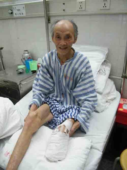 南方网5月14日报道 一辆银白色的面包车沿着良垌村新修成的山路蹒跚而行,坐在驾驶室的张大进眉梢挑动,满脸自豪地向笔者介绍着自己一家人刚刚完成的这份杰作。“走这条路去大坡镇,比另外一条路近3公里,可以节省1个小时”。 出山要道被堵难修通 拥有3000多人的良垌村是高州市大坡镇所辖数个村委会之一。山峦叠嶂之中,一条坎坷、曲折的山路帮助其与相对繁华的市镇保持着人与物的顺畅交流。 张大进所说的“另一条路”是良垌村原有最重要的一条出村山路。沿该路线行走8公里,途径大旺垌村,即可到达大坡镇圩。虽然自1989年贯通之后,该路一直未能铺上水泥或柏油,2、3米的宽度如果用车道的概念来衡量,也只能勉强算是一条单行线,但只要不求速度,摩托车、汽车也能缓慢碾过崎岖的路面。 大旺垌村与良垌村相邻,山路中点的位置也使其无愧于“良垌村咽喉”的称呼。两个兄弟村近些年来的关系,一直磕磕绊绊。特别是2003年以来,围绕修路占地、电站用水等形成诸多历史纠葛,双方村民冷眼相向。而随着矛盾的不断升级,连接两村的这条山路更成为争斗的焦点。“每年都会被(大旺垌村民)不定期挖断几次”,良垌村民认为,地理位置上的劣势使自己不得不受制于人,甚至付出惨重代价。 2005年夏,台风袭击过后,这条山路被滑坡产生的土石方死死堵住。良垌村民意欲修通,却遭对方阻挠。而此时,一村民突发疾患,救护车却无法进入,无奈只能采用人背、手抬的原始方式。不幸的是,病人没等送进医院大门,就已在亲人的后背撒手人寰。 在两村矛盾短时间内无法化解的情况下,寻找一条通往大坡镇的新路,成为摆在良垌村民面前一道亟待破解的难题。2008年1月,良垌村原支部书记兼村委会主任何为文获刑入狱。虽然村民自称“大家都很团结”,对于杂姓而居的良垌村来说,灵魂人物的突然退场,让修建新路的希望显得极为渺茫。 就在交通解困的希望渐行渐远之时,去年年底,良垌村新辟出村山路的僵局,竟奇迹般地被打破了。而挑起这道大梁的,则是一位耄耋老人干枯而瘦弱的肩膀。 张家自筹资金辟新径 老人名叫张运才,已经在良垌村大路塘村小组默默生活了85年。张运才可以说是不折不扣的普通村民——非党员出身,也没有尝过当村干部的滋味,只进过几天学堂的他,至今只能从“一”勉强写到“四”。但一个雄心勃勃的修路计划,却已在他心中埋藏了许久。 虽然原有山路20年前已经贯通至良垌,而老人所居住的大路塘村小组距离这条路的实际终点良垌村委会,却还有数百米路程。其间相隔一片稻田,虽有一条羊肠小路穿过,但仍然无法改变大路塘村小组的孤岛状态。老人的二儿子张大进几年前建新房的时候,砖石材料都是先卸到村委会,再“雇人一点一点扛回家”。 2005年,张运才向良垌村委会提出自筹资金,打通大路塘村小组和良垌村委会之间的道路。但这一建议并没有得到对方的支持,理由是:修路要占用水田,问题十分复杂。而部分村民也的确不愿无偿牺牲水田给张家修路。 去年12月,良垌村处于群龙无首状态数月之后,张运才老人决定重启搁浅的修路计划。面对那条途径大旺垌村的山路随时可能被切断的现实,他决定另辟蹊径,自另一方向重新修建一条途径河口村通往大坡镇的新路。 下定决心后,张运才旋即召开家庭会议。父亲的暮年壮志得到了4个儿子的鼎力支持,并依据自身财力,每人领取了几千至数万元不等的筹资任务。 不过,消息闭塞的老人并不知道,同在深圳打工的四个儿子眼下正在经济寒风中“瑟瑟发抖”。最早出去的大儿子张大华,十几年后的身份仍然是一名普通保安。“以前最多每月能挣900多块,现在600元也干”。二儿子张大进是一名货车司机,生意比往年冷清了许多。而两个小儿子合伙开设的模具加工厂,也正在疾风暴雨中顽强求生。 按照张运才的统计,整个工程总计投入资金52000元,除32000元来自儿子和自己的原有积蓄之外,剩余2万元均来自亲戚朋友的借款。 竣工日老翁左腿被截肢 2009年1月,随着一台钩机、一辆运土卡车轰鸣着攀上陡峭的山坡,老人带领自己的儿子、儿媳拎着锹镐紧随其后,新时代“愚公移山”的故事在高州西北部的大山深处上演。 每天早上7点,张运才的身影会准时出现在工地,下午6点才拖着疲惫的身躯回到家中。他对这条路的感情之深,如同在照料一个刚刚呱呱坠地的婴儿。但周而复始十几天之后,日益严重的脚伤,让老人不得不暂时告别这条让他牵肠挂肚的新路。 2005年,80多岁依旧躬耕田亩的张运才老人,在插秧时不甚被田里水虫咬伤,并引发感染。2008年11月,老人的左脚小脚趾被迫切除。而新路工程启动之后,长时间劳累加之细菌感染,至今年1月下旬,老人的脚伤再度复发,并迅速恶化。和许多农民一样,一辈子很少吃药、打针的张运才老人选择了“捱”。但病魔的威力,大大超乎了老人的想象。痛入骨髓的煎熬,让张运才整日无法入睡,食欲不振。体重也由近60公斤急剧下降至40公斤。 3月初,就在新路主体工程基本告竣之时,一手造就它的张运才却在床板上痛苦呻吟、辗转反侧。 4月22日,张运才拖着已经大半溃烂的左脚,被家人抬进高州市人民医院。而此时,老人左脚血管已基本坏死,血液循环也发生困难。4月24日,老人第二次被送上手术台。这一次,张运才的左腿膝盖以下部分被全部切除。 在良垌村,虽然张运