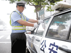 青岛交警给警车贴罚单被称"最牛交警"(图)