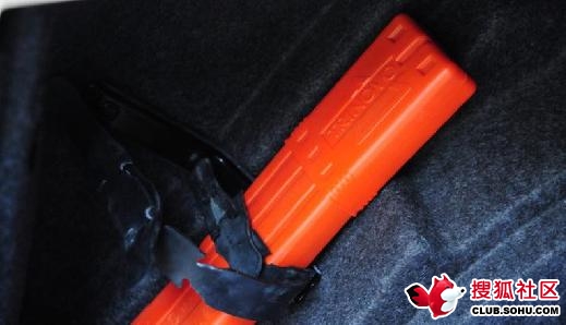 后备箱里面的加长橡胶捆扎带,17元,套着原先短的橡胶带一起装上,短的还是捆扎警示牌,长的就捆扎灭火器,不过还没有买到合适的。