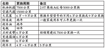 点评:奥迪A6L的2.0T车型厂家建议5000公里开始首保,2.4L和3.0L是7500公里进行首保。但如果一年不用,即使行驶里程为零也需保养。