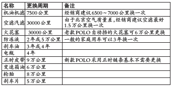 点评:经销商给记者提供的上海大众POLO保养周期是每7500公里保养一次。据记者了解,POLO换一次机油机滤包括工时费在内需280元到300元左右,更换一次防冻液需要230元,要是更换一次电瓶换一个轮胎,那动辄就得上600元左右。