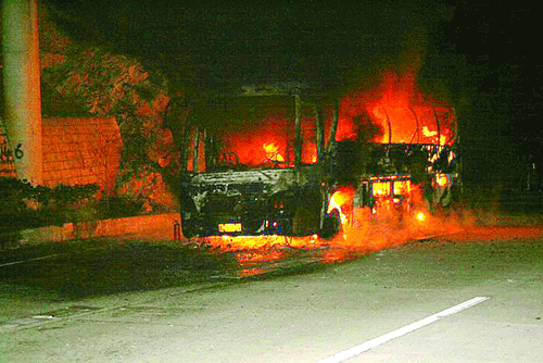 ![]() 昨日凌晨(1月2日),一辆行驶在邵怀高速公路隆回路段的大巴车突发自燃,短短半个小时内,大巴车被大火烧成空壳。驾驶员冷静自救,靠边停车后唤醒一车熟睡的47名乘客安全撤离,没有发生人员伤亡。 凌晨5时30分许,沪昆高速湖南段由东往西324公里的港湾内,有一辆大客车正在起火燃烧。邵怀高速民警、隆回县消防大队、隆回县人民医院和大水路政队一同前往现场,牌号为贵D803**的由广东肇庆开往贵州铜仁的大客车停靠在港湾处,大火已从车尾蔓延至车头处。燃烧的大火几公里外都看得见,期间还伴随着客车油箱的爆鸣声,车上人员已经疏散,现场排起近3公里长的车龙。 民警引导消防车从路肩处通过进入起火现场进行扑救。经过30多分钟的扑救,大火于早上6时20分左右被扑灭,此时起火现场路面已被烧裂。 据大客车司机描述,事发时他从后视镜发现右后轮胎冒出火苗,而正值凌晨,风比较大,于是火便借着风势朝发动机的方向蔓延开去。驾驶经验丰富的司机冷静地将车停靠在最近的一个港湾,迅速唤醒车上每一位熟睡的乘客,并组织乘客们远离起火大巴。随后,司机用车载灭火器尝试灭火,没有效果。正准备打电话报警时,民警已抵达现场。 早上7时,车上47名乘客乘坐从隆回调来的大巴车踏上回家的路。目前,起火原因还在进一步调查当中。(记者黄娟通讯员雷坤平实习生罗娟娟) |