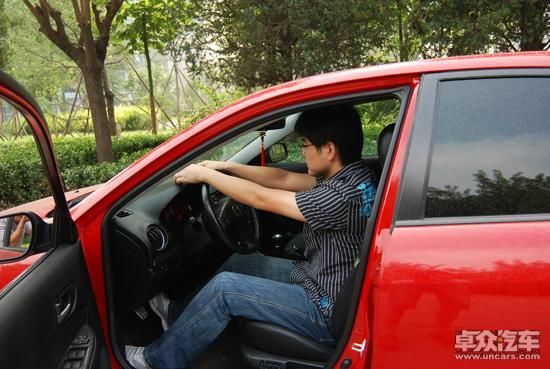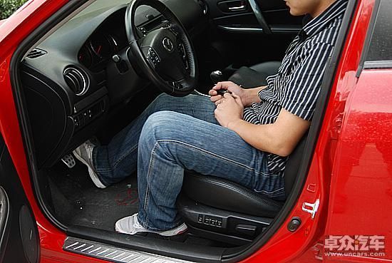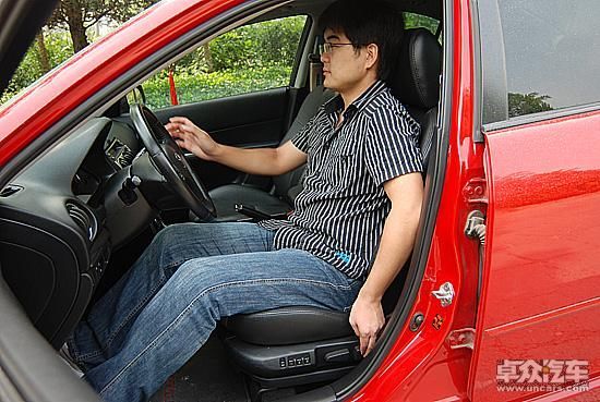 根据自己的身材,保证在右脚把刹车踏板、离合器踏板和油门踩到底的时候,大腿与小腿之间自然弯曲,此时的座椅前后位置是合适的。 第二步:调整座椅角度和高度