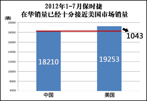 中国市场对于保时捷来说已经逐渐成为核心市场,2012年1至7月份中国贡献了保时捷全球22%的市场份额,而从上图不难看出,如果算上美国市场的话这两大市场的总和已经接近全球的一半,并且还在保持持续增长的趋势。