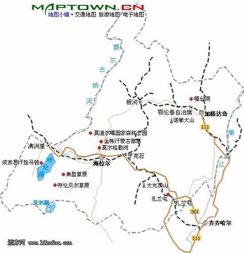 海拉尔 以下介绍本攻略所涉及的主要景点 一、海拉尔 1、地理 海拉尔区位于呼伦贝尔盟的中部,东临大兴安岭,是呼伦贝尔市政府所在地,呼伦贝尔市的政治、经济、文化中心,也是到达呼伦贝尔大草原的必经之地,素有“草原明珠”之称。海拉尔周边地区景致极佳,以草原、湖泊、冰雪风光为主要的旅游景观。这座草原城市三面环山,伊敏河穿过市区,把城市分成河东河西两部分。 由于消费水平不高,在海拉尔不必花很多钱就可以住到很不错的宾馆房间。不推荐住在小旅馆,尤其是火车站附近的一些小旅馆。 2、海拉尔西山国家森林公园 位于城区西部区政府后面的西山上,早在清代,这里就被列为呼伦贝尔八景之一——沙埠古松,也是我国唯一以樟子松为主体的国家级森林公园。门票10元。 3、侵华日军海拉尔要塞北山遗址 作为一个中国人,来到呼伦贝尔,这里你一定要去!此处并无旖旎的自然风光,却有着地狱般的阴森,这里是中华民族苦难历程的一个片断。 目前,海拉尔已开发的北山要塞遗址,是当年侵华日军所建筑垒地堡的地下核心部分,通道总长度为4000多米,面积为5000平方米。1945年8月18日,驻守在北山要塞的日军接到关东军的投降命令,向苏军投降,苏军将地下工事内粮食、弹药等物资运走,将地面的碉堡、永备火力点及地下工事入口全部用炸药炸坏。如今,北山阵地地面工事虽然已经破坏殆尽,但是地下部分仍基本保存完好,成为呼伦贝尔市的爱国主义教育基地。 门票20元,含讲解费。从城区乘5路公共汽车,到终点“铁收审站”下车。 4、万人坑 海拉尔要塞工程结束时,为了保密,日本鬼子将劳工分批分期集体枪杀、活埋,万人坑的白骨,实际上的数量超过万人。 到达万人坑可乘坐海拉尔去往拉布大林、陈旗、满洲里方面的长途汽车,告诉司机在过了“坝后”那个大坡的加油站下车,下车后加油站西边正对着的那个沙包就是当年的万人坑了,距路边不到1000米。 二、满洲里 1、市内 地处呼伦贝尔地区西部的满洲里市被誉为“亚洲之窗”,是中国北方最大的陆路口岸。满洲里国门已经是满洲里的标志了,也是游客到满洲里必去之处,位于满洲里市西部中俄边境处我方一侧,于1989年建成。 可去五道街乘公车(1元/人)去国门。车子只到中俄贸易市场。下车后往前走一段路就是国门,门票20元。国门这边的草原和建筑非常漂亮。 另外,满洲里街头行色匆匆的俄罗斯人也是此地一道特别的风景线。 满洲里是口岸城市,外来人口较多,应选较好的宾馆住宿。 2、呼伦湖 呼伦湖,当地人称达赉湖,方圆八百里,是中国第五大湖泊,内蒙古第一大湖。其鸟类资源丰富,在赏鸟之余,呼伦湖日出也是一道不可不看的风景。 呼伦湖水生动物丰富,又是我国北方数千里之外唯一的大泽,水域宽广,沼泽湿地连绵不断,草原辽阔,食饵丰富,鸟类栖息环境很好,因此成为我国东部内陆鸟类迁徙的重要通道,也是观鸟的好地方。 目前达赉湖的主要旅游区就是湖畔的小河口旅游区,达赉湖饭店的全鱼宴是相当有名的,是难得一尝的美味,去的时候不要错过。湖滨景区还有呼伦湖日出、呼伦蜃景、成吉思汗拴马桩、鸥岛等。游呼伦湖一般需要4-5个小时。 从满洲里市区到小河口单程40公里,从满洲里市内的边贸市场门口有车到呼伦湖(车票20元/往返,车型是小型面包车);也可租车去(来回车费100元左右,车型一般是伏尔加),租车的好处在于:时间相对较自由,而且可以从司机那儿打听到一些当地的名吃、名景和风土人情。 呼伦湖景区门票20元/人;若包海拉尔的出租车前往,则司机不用买票。