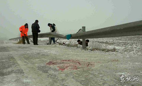 事故现场有血迹。东北网记者 陈静 手机拍摄