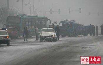 150米内26车发生事故 昨日7时50分许,石市小雪纷纷,开发区珠江大道与黄山街交口以东约200米,26辆车因道路湿滑相继发生事故,致使4人受伤。 昨日8时10分,石市珠江大道与黄山街交口以东约200米处,落到快车道上的雪经来往车辆碾轧已经融化,继而又结了一层薄冰。在大约150米长的路段内,每隔几米远就有车辆三三两两地追尾,众多受损车辆几乎布满双向车道,过往车辆只能从两侧绕行,压车三四百米。 “大概7点50分左右,我在不远处听到此起彼伏的刹车声,就看到路上行驶的汽车都像失控了一样撞在一起。”目击者刘先生说。 开发区110三号车民警表示,初步统计有26辆汽车受损,“雪后路面非常湿滑,前面一出事故,后面的车纷纷刹车,因轮胎打滑而失控撞在了一起。” 在受损的车辆中,一辆运载氧气罐的蓝色货车受损最为严重。车前脸变形,前挡风玻璃破碎,车上三名人员全部受伤,被变形车体卡住,其中一人昏迷。 几名消防队员分别拿来无齿锯和剪扩两用钳,将被挤压弯曲的车门打开。司机和坐在中间的男子被消防人员从车门处救出。紧接着,消防队员系上钢丝绳,钩住车前脸的一根横梁,将驾驶室的空间一点点拉大,成功救出昏迷男子。随后,三名伤者全部被等在一旁的120救护车送往医院。 无独有偶。昨日18时30分左右,石安高速邯郸支漳河大桥段向南行驶的100多米车道上,3车发生相撞事故,后面的车因路滑刹车不及,导致20多辆车发生事故。事发后,高速交警上路疏导交通,至昨日21时许疏通出一条车道可供通行。 巡警支招雪天如何行车 开发区110三号车民警李建舟表示: 1、行进中车速要平稳,不宜过快或猛加速。需要加速或减速时,油门应缓缓踏下或松开,以防驱动轮因突然加速或减速而打滑。 2、要增大行车间距,比无雪干燥路面时增大4~5倍。制动时,应以点刹方式,即轻踩轻抬,不要一脚踩死。没有ABS(防抱死刹车系统)的车尤其要注意防止侧滑。 3、尽量避免在冰雪路上超车,实在需要超车时,一定要选择宽敞、平坦、冰雪较少的路段,不得强行超车。同时,超车后千万不要马上向回变线,而要尽量给被超车留出安全距离。 |