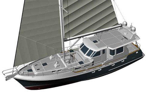 这是一款集合了动力艇和帆船两类游艇各自特点的独特游艇,既能在独桅风帆驱动下航行,无风的时候也可以在较大马力发动机驱动下前进(173马力单机,速度可达9~10节)。 外形和拖捞船式游艇基本相同,只是多了一根可悬挂船帆的桅杆。为了更适合长距离航行,设计人员还装配了液压自动卷帆器和电动绞盘。使用柴油发动机时,沿袭了拖捞船式游艇的传统优点:低油耗、低排放和长航程(可达3000海里);如果使用船帆驱动,只要有风,可以像帆船一样永久航行下去。该公司表示:“Nordhavn Motorsailer结合了动力艇和帆船各自的优点,这种可环游世界的巡航艇具有无可比拟的舒适感、安全感和可靠性。” |
