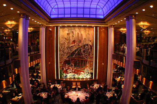 玛丽女皇二号的主餐厅,中央有玛丽二号的巨幅画像