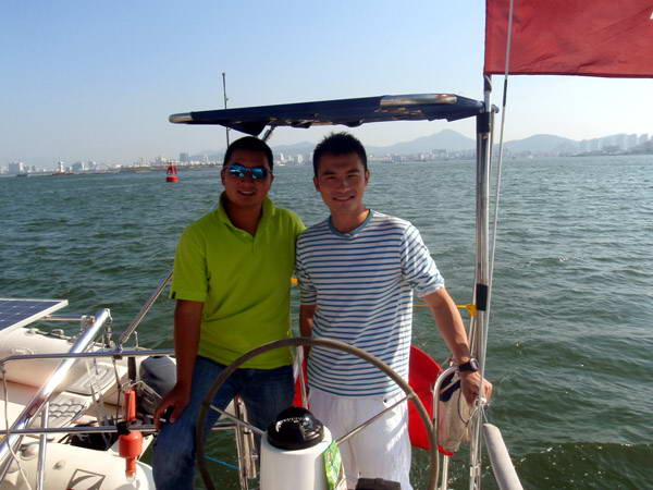 扬帆万里近5个月的“骑士号”目前已经抵达三亚修养,准备冲刺最后的三亚至深圳的返航航程。由于这几天南中国海强劲的东北风影响,骑士号预计将于12月7日从三亚出发。 抵达三亚的第二天,2号早上9点多的时候,我们迎来了三亚站的名誉船长、著名影视艺人耿乐,刚见面就觉的他给人的感觉就和电视上他经常扮演的角色一样,阳光,随和。 下图:董超与水手青蛙。 |