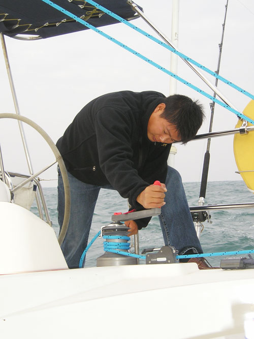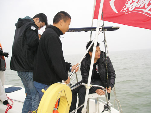 11月26日下午4点,骑士号冲过琼州海鲜的大风大浪,有惊无险的停靠在海口码头。 在珠海至海口的航段,“扬帆万里”南下航段的第一位名誉船长、著名青年演员,出演08年热播剧《奋斗》中陆涛的扮演者佟大为于23日在珠海香洲码头登上骑士号。 佟大为刚上船就表现对骑士号很大的好奇心。和领队桂花鱼讨论骑士号的驾驶技术,和水手海带一起聊骑士号的船舱设施,和船长王庆聊聊航海经验,到最后还和水手青蛙比试了一下升帆。下图:骑士号名誉船长佟大为(图中)与领队桂花鱼(右一)、水手海带(图左)下图:名誉船长佟大为和船长王庆聊航海。下图:名誉船长佟大为和水手海带(图左)了解骑士号船舱设施。