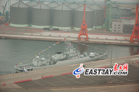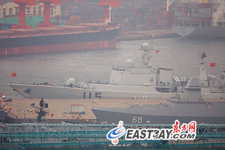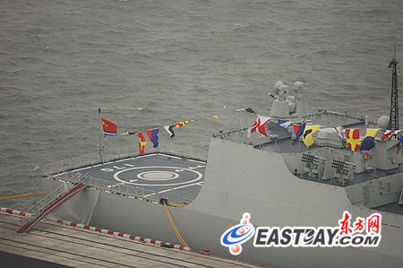aa 国产新型驱逐舰“沈阳”号也亮相青岛码头 东方网特派记者钱程灿、崔笑愚、曹磊4月20日青岛报道:对于即将进行的海上阅兵,中国海军已经做好了充足的准备,大量力主舰艇已经齐聚青岛,盛装迎接外国客人。 东方网记者这两天在青岛港码头看到,大量的中国海军现役主力舰已经停靠在码头,有些舰艇已经挂上了代表举行隆重活动的满旗,而且迎接客人登舰的舷梯已经放置到位。 中国海军的170舰和527、528舰,在昨天就已经放下舷梯,舷梯上都标明了各舰的名字。而中国海军的一艘宋级潜艇——海军长城218艇——今天下午还在对舷梯进行布置,一些军用车辆和军人,正在紧张地工作中。白底蓝字加上海军军徽的样式,显示出了海军的特色。海军官兵也换上了重大节日庆典才穿的白色礼服。 而停靠在青岛奥帆中心,可供游客参观的116舰的姊妹舰——115号,今天也出现在青岛港码头。115舰沈阳号是北海舰队的主力舰,也是051C级驱逐舰的首舰。该型军舰安装了俄制“里夫”防空导弹垂直发射系统,具有强大的防空能力。 记者还在现场看到,中国海军054级导弹驱逐舰526舰出现在青岛港外围海域。这是一款中国海军最新型的导弹护卫舰。 而记者刚刚了解到,中国人民解放军海军司令员吴胜利傍晚在青岛港码头宣布,多国海军活动正式开幕。中国海军将以最大的热情来迎接来自14个国家的21艘军舰。 中国多艘新型军舰将盛装出场 东方网记者看到中国海军170舰、527舰、528舰、866医院船和一艘宋级潜艇已经挂上了满旗,出现在了青岛港,而另一艘116舰,正停靠在奥帆中心海域。这些舰艇都有可能出现在4月23日的阅兵式上。 170“兰州”号,这是一款052C级导弹驱逐舰,由于是这一些的首艘舰,因此国外也按照首舰的名称,把052C级称为兰州级,在这艘军舰上,中国首次安装了垂直发射系统,内装海红-9防空导弹,被人称为“中华神盾”舰。这款军舰的外型采用隐身设计,减少了雷达反射面积,其漂亮、现代的外形,肯定能赢得军迷的赞赏。