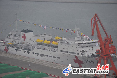 停泊在码头的国产“绵阳”号护卫舰 116舰“石家庄”号属于中国051C级驱逐舰,安装有购自俄罗斯的“里夫”垂直发射系统,是俄罗斯最先进的舰载区域防空导弹系统。因此,这个型号驱逐舰又被称为“中华俄式神盾”舰。 527“洛阳”号和528“绵阳”号导弹护卫舰,都属于053H3型,北约称之为江卫Ⅱ型护卫舰。装有2座4联装C802导弹发射架,红旗-7八联装舰空导弹,一座双联装国产100毫米炮等武器。“洛阳”号曾在2008年,随“哈尔滨”号一起访问过韩国。 866岱山号医院船,是中国自主设计、建造的首艘大型专业医院船,也是世界上第一艘大型专业医院船。2008年12月22日开始在海军服役。866岱山岛船的交付使用,结束了中国海军没有大型制式医院船的历史。其硬件设施相当于陆上三甲医院。 宋级潜艇是由中国自主研制的一款新型潜艇,潜艇采用了水滴型设计,水下噪音大大减小,可以说是真正的“水下杀手”。 另外,据悉,中国海军的船坞级登陆舰、核潜艇也将亮相。而这次阅兵,中国海军的各兵种都会参加,到时包括海军航空兵和各型战斗机、预警机等都会与大家见面,军事迷们可以一饱眼福。