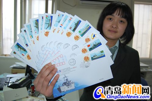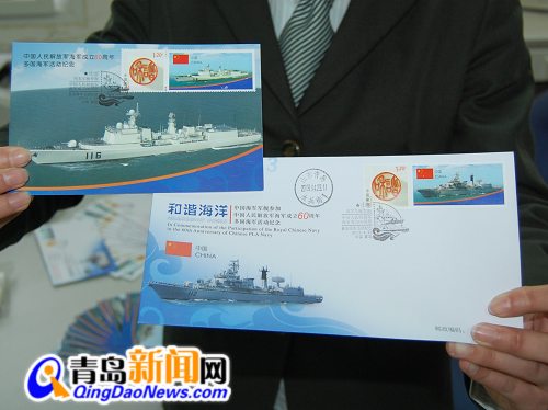 记者了解到,一套极限纪念封分16枚,除了15个国家海军的船舰国旗标识外,还有一张纪念海军成立60周年的独特纪念封,售价为100元/套,并加盖此次活动纪念邮戳、水兵邮局日戳。而极限片售价50元/套,共15枚,加盖此次活动纪念邮戳。