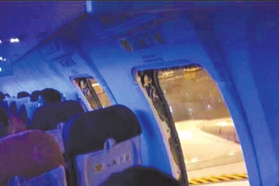 强行打开飞机紧急出口两名乘客被拘