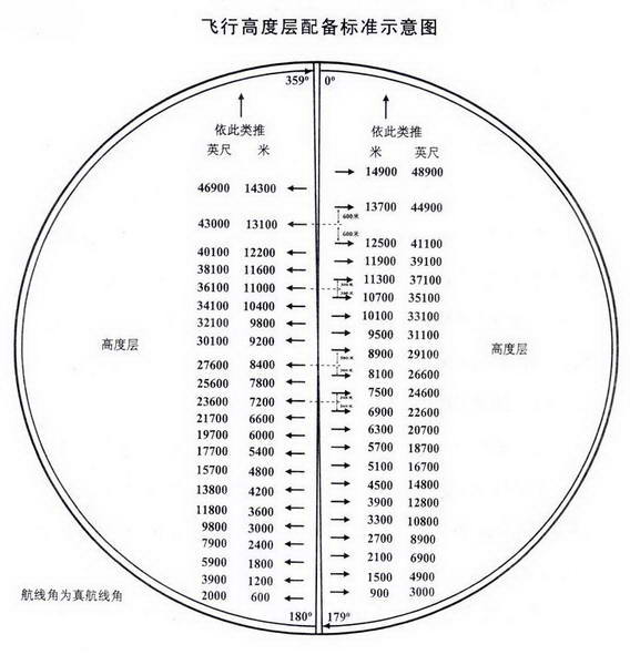 第二项修改为:“真航线角在180度至359度范围内,高度由600米至8400米,每隔600米为一个高度层;高度由9200米至12200米,每隔600米为一个高度层;高度在13100米以上,每隔1200米为一个高度层。”