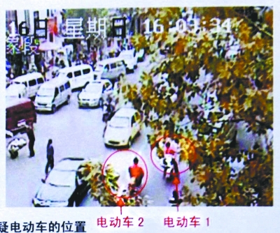 图:司法鉴定书上视频截图显示,事故前张聪的2号电动车位置较后。